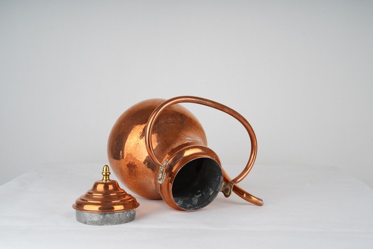 Cupper pot antik ini merupakan wadah kuno yang terbuat dari tembaga dengan tampilan patina alami yang memberi kesan klasik. Bentuknya sederhana namun kokoh, sering digunakan pada masa lampau sebagai tempat menyimpan air, susu, atau bahan dapur. Keindahan material tembaga dengan kilau hangat menjadikannya tidak hanya fungsional, tetapi juga bernilai dekoratif sebagai koleksi antik. Estimasi packing 40*40*40