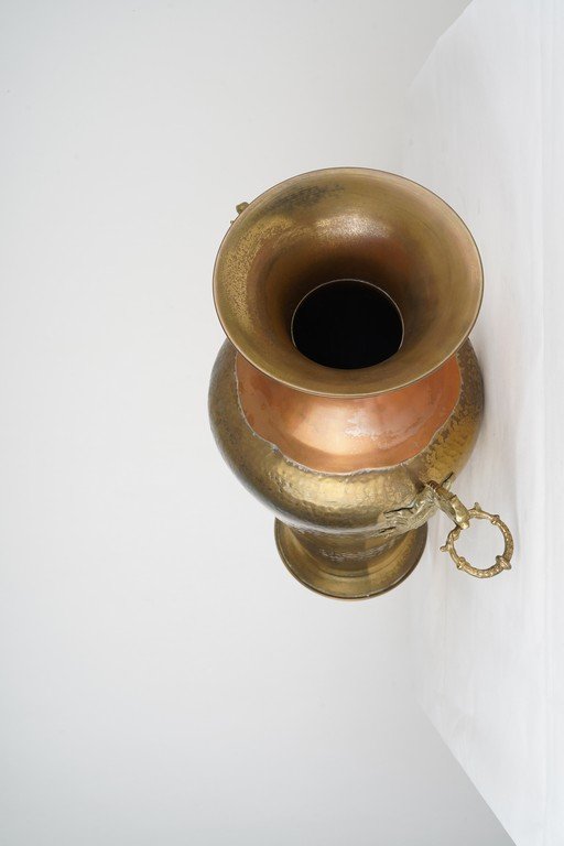 Cupper pot antik ini merupakan wadah kuno yang terbuat dari tembaga dengan tampilan patina alami yang memberi kesan klasik. Bentuknya sederhana namun kokoh, sering digunakan pada masa lampau sebagai tempat menyimpan air, susu, atau bahan dapur. Keindahan material tembaga dengan kilau hangat menjadikannya tidak hanya fungsional, tetapi juga bernilai dekoratif sebagai koleksi antik. Estimasi packing 55*55*70
