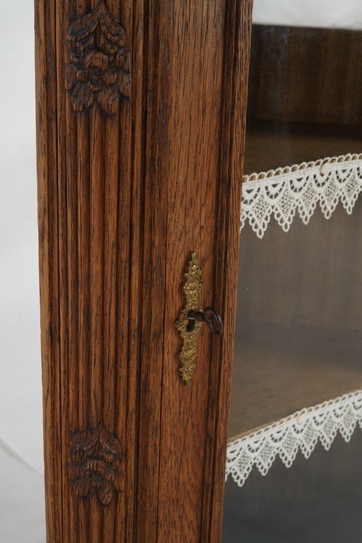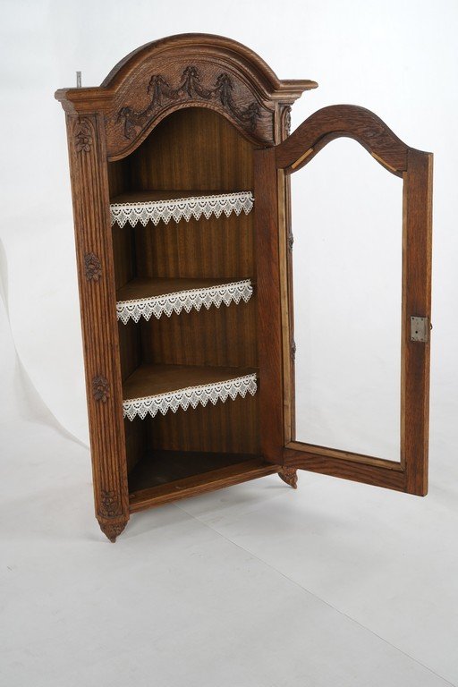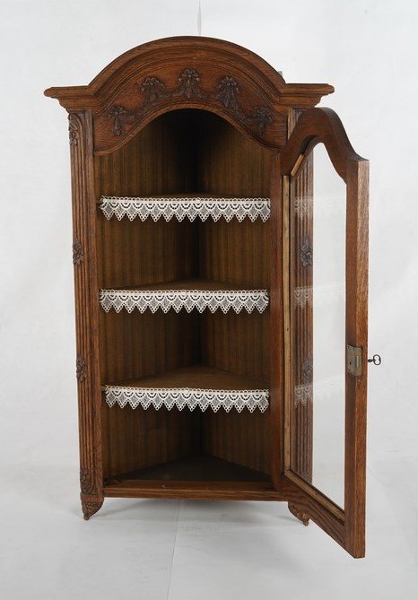 Perabot antik khas Prancis yang dirancang untuk mengisi sudut ruangan secara elegan dan fungsional terbuat dari kayu solid berkualitas dengan pengerjaan tangan yang halus, lengkap dengan pintu panel kayu atau kombinasi kaca untuk menampilkan koleksi di dalamnya. Detail ukiran halus, finishing natural atau bernuansa hangat, serta penggunaan hardware logam klasik menjadi ciri khasnya. Selain berfungsi sebagai tempat penyimpanan, kabinet ini juga memancarkan pesona klasik Prancis yang menawan, menjadikannya elemen dekoratif yang memperkaya suasana interior rumah bergaya tradisional maupun elegan. Estimasi packing 70*45*120