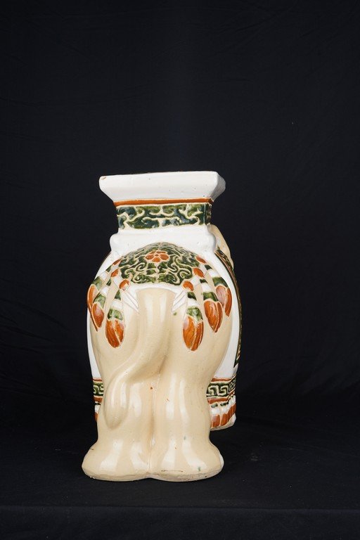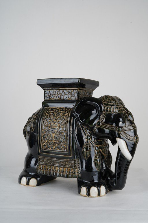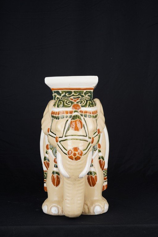 Dekorasi antik patung porcelain ini merupakan karya seni hias yang memadukan keanggunan porselen dengan simbolisme gajah sebagai lambang kekuatan, kebijaksanaan, dan keberuntungan. Terbuat dari porselen berkualitas tinggi, permukaannya dilapisi glasir halus dengan warna cerah yang dipadukan dengan detail ornamen dekoratif. Bentuk tubuh gajah dibuat proporsional, dengan telinga, belalai, dan gading yang dipahat secara detail. Pada bagian punggung sering dihiasi motif dekoratif bergaya oriental atau Eropa, dengan tambahan sentuhan warna emas atau pastel yang mempertegas keanggunannya. Kaki kokoh dengan pijakan yang seimbang membuat figur ini tampil stabil dan anggun sebagai hiasan meja maupun lemari kaca. Estimasi packing 60*35*55