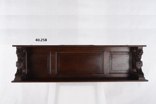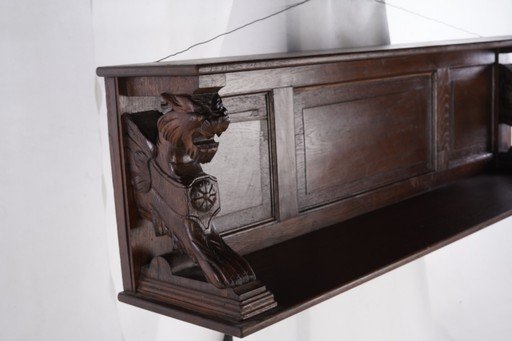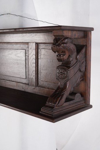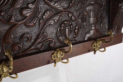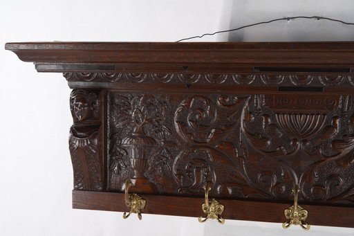 Wooden Coathanger ini adalah sebuah gantungan dinding yang menawan, terbuat dari kayu solid dengan ukiran tangan yang indah. Bagian depannya menampilkan relief motif yang rumit, memberikan sentuhan seni dan karakter klasik khas furnitur Eropa. Dilengkapi dengan beberapa kait logam berwarna emas tua di bagian bawah, gantungan ini berfungsi untuk menyimpan mantel, topi, atau kunci, sekaligus menjadi elemen dekoratif pada dinding. Bentuknya kokoh dengan sisi ukiran melengkung, serta patina alami kayu menambah nuansa antik yang elegan. Barang ini bukan sekadar gantungan, melainkan karya seni dekoratif yang mencerminkan gaya hidup dan keanggunan masa lampau. Estimasi packing: 150*40*55