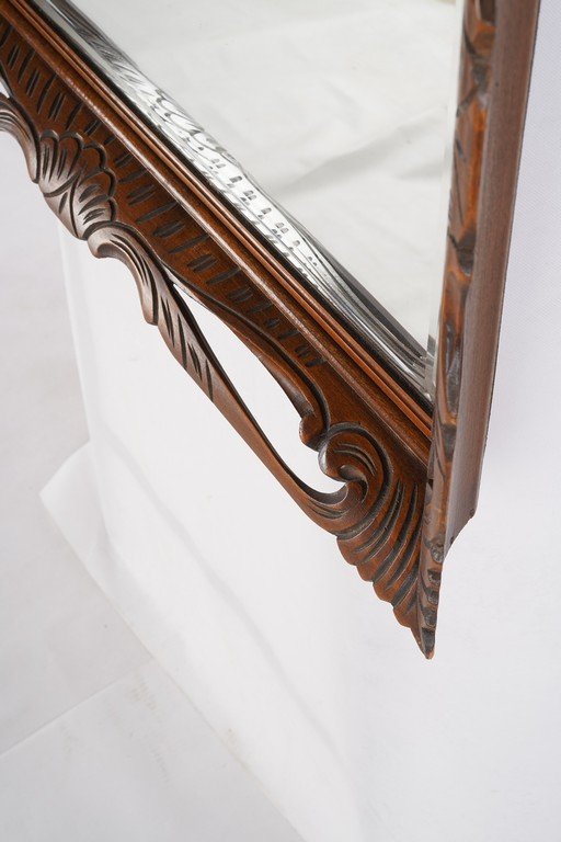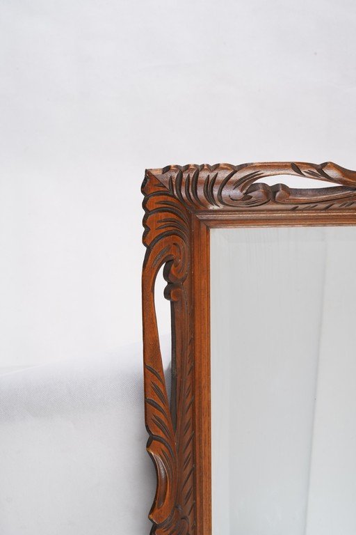 Bingkai cermin kayu antik ini adalah karya seni yang memancarkan pesona klasik. Dibuat dari kayu pilihan, bingkai ini sering dihiasi dengan ukiran tangan yang rumit, menampilkan motif bunga, dedaunan, atau desain geometris. Patina alami dan keausan halus dari waktu menambah keindahan dan karakter uniknya. Gaya desainnya yang elegan mencerminkan era tertentu, membawa nuansa nostalgia dan kehangatan. Sebagai barang antik, bingkai ini tidak hanya berfungsi untuk menampilkan cermin, tetapi juga sebagai elemen dekoratif yang memperkaya ruang dengan sentuhan sejarah dan keanggunan yang tak lekang oleh waktu. Jual barang antik, klasik, dan retro Estimasi packing 100*80*30